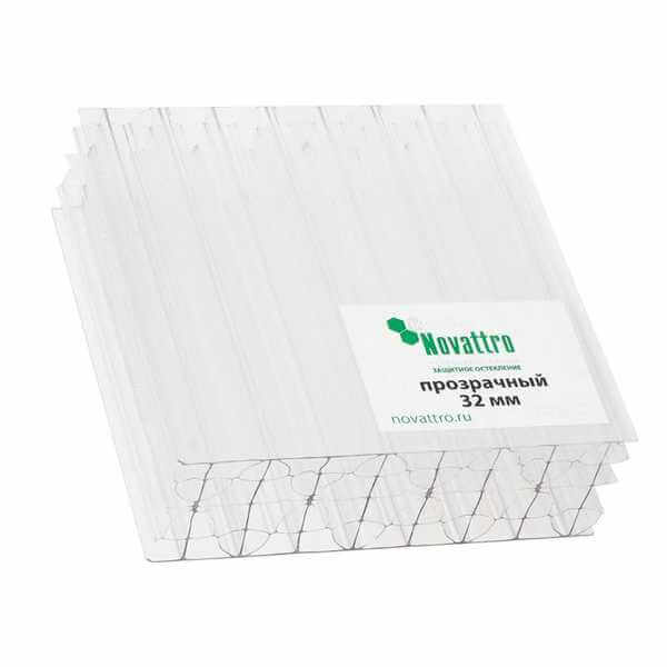 Сотовый поликарбонат 32 мм NOVATTRO прозрачный 2100х12000 мм