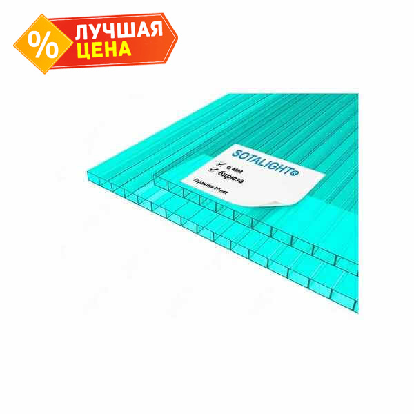 Сотовый поликарбонат 6 мм SOTALIGHT бирюза 2100х12000 мм - это прочный и легкий материал, который отлично подходит для использования в различных строительных и дизайнерских проектах. Поликарбонат обладает высокой прочностью и устойчивостью к воздействию внешних факторов, что делает его идеальным выбором для создания надежных и долговечных конструкций.