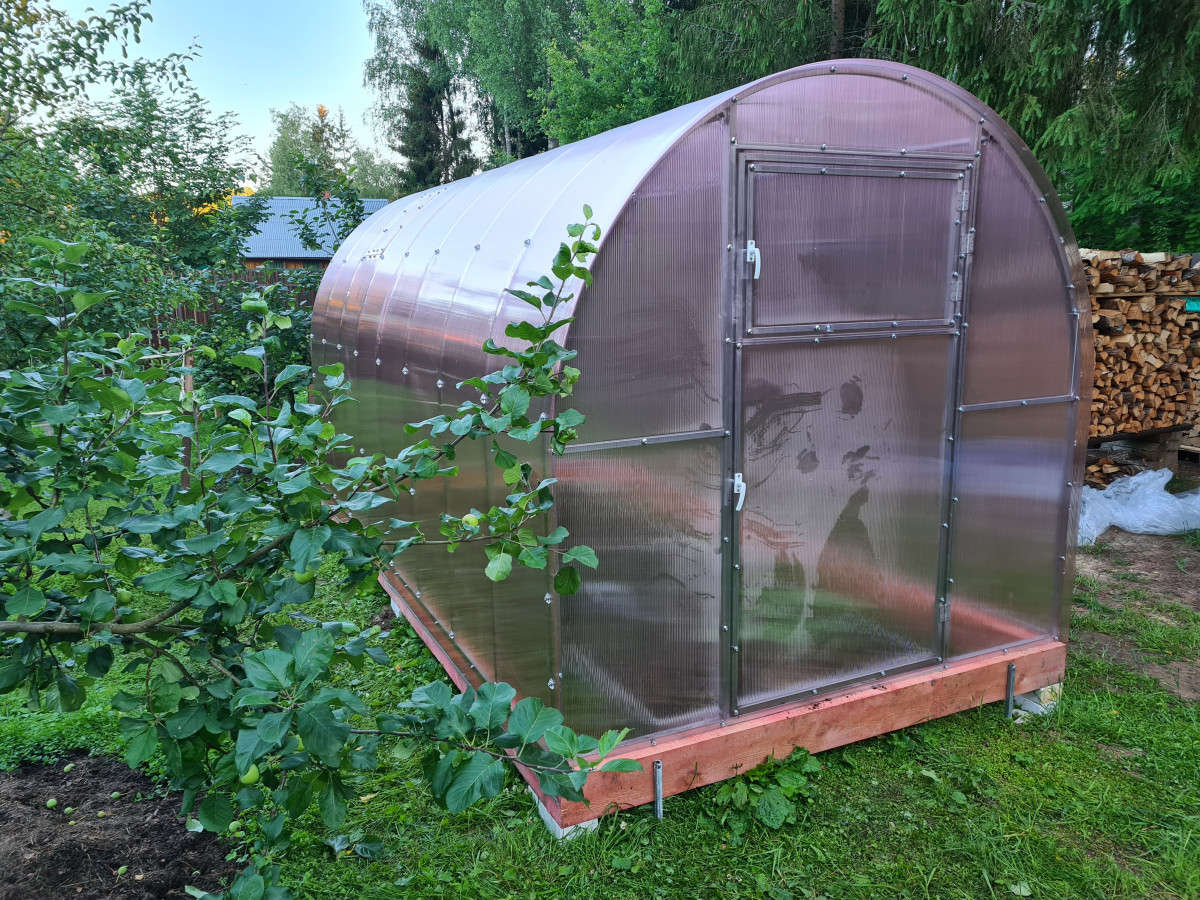 • практически прямые боковые стороны теплицы позволяют использовать пространство по максимуму и выращивать культуры, плотно прилегающие к стенкам
