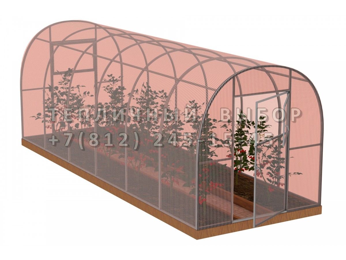 Теплица из поликарбоната-фито Усиленная Арочная 2,1х8 h=2 м профиль 20х20 мм