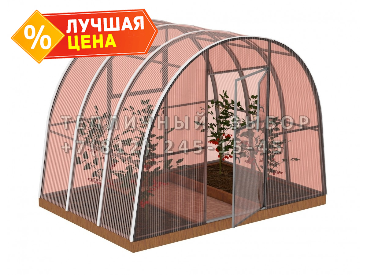 Теплица из поликарбоната-фито Усиленная Арочная 2,5х2 h=2 м профиль 25х25 мм
