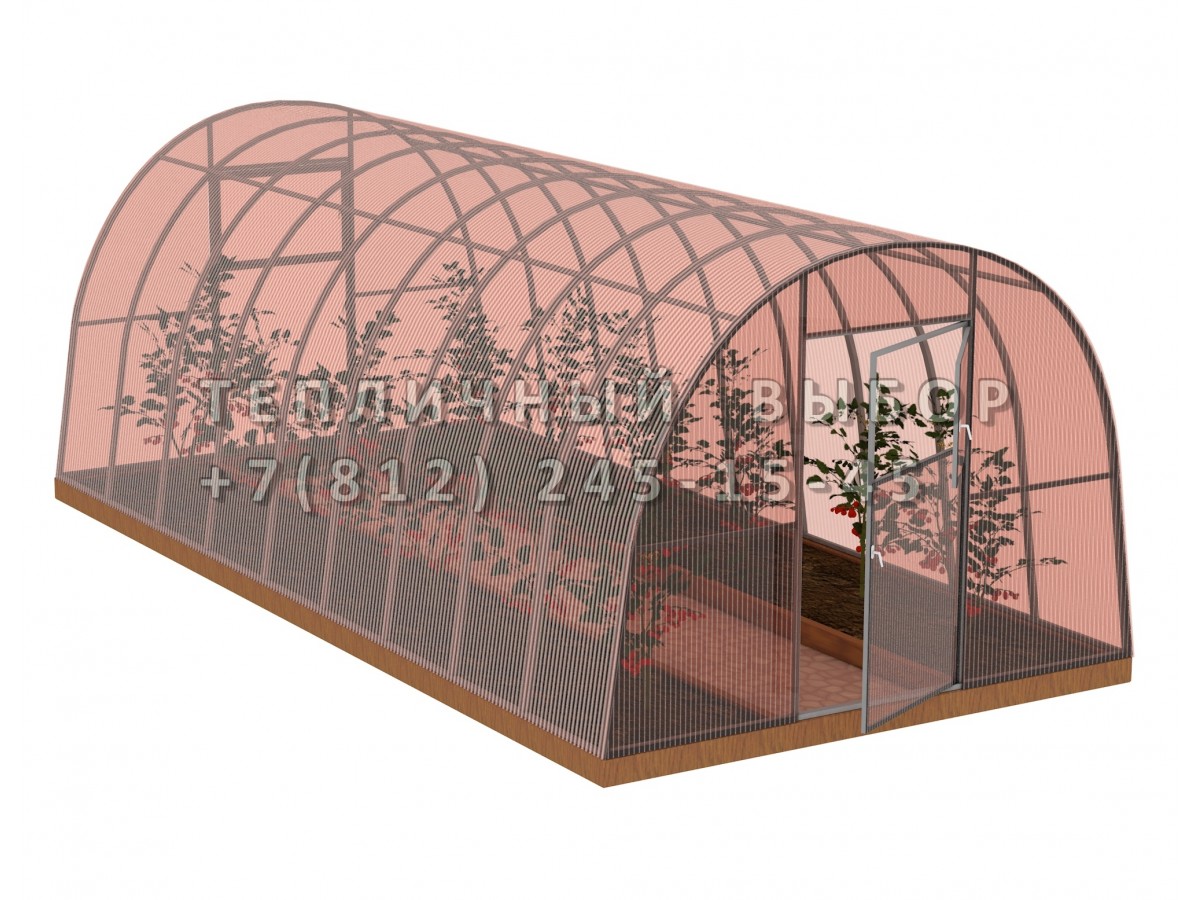 • практичный каркас с дверьми в каждом торце обеспечивает легкий доступ в теплицу и её проветривание
