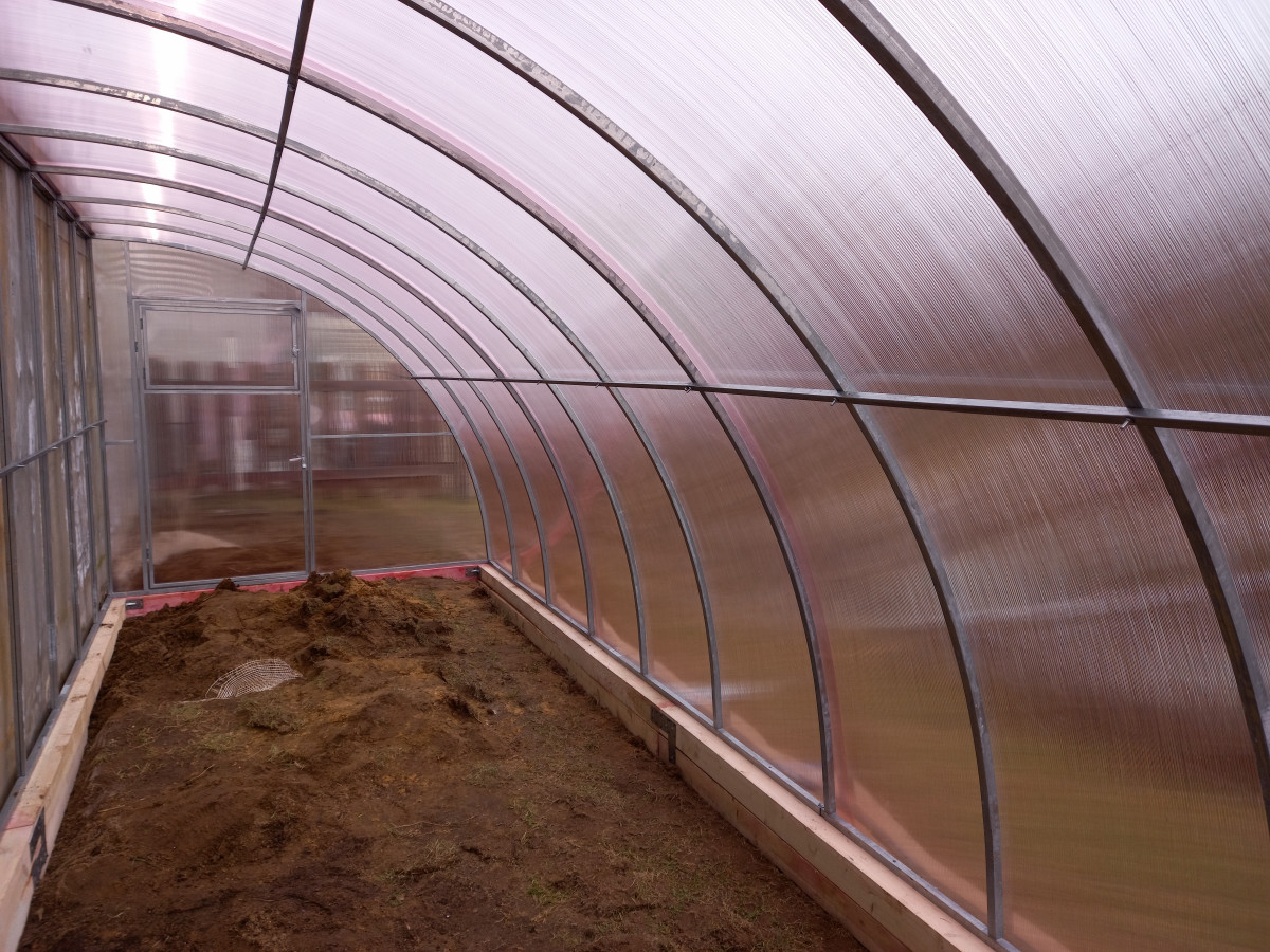 • практичный каркас с дверьми и форточками в каждом торце обеспечивает легкий доступ в теплицу и её проветривание;