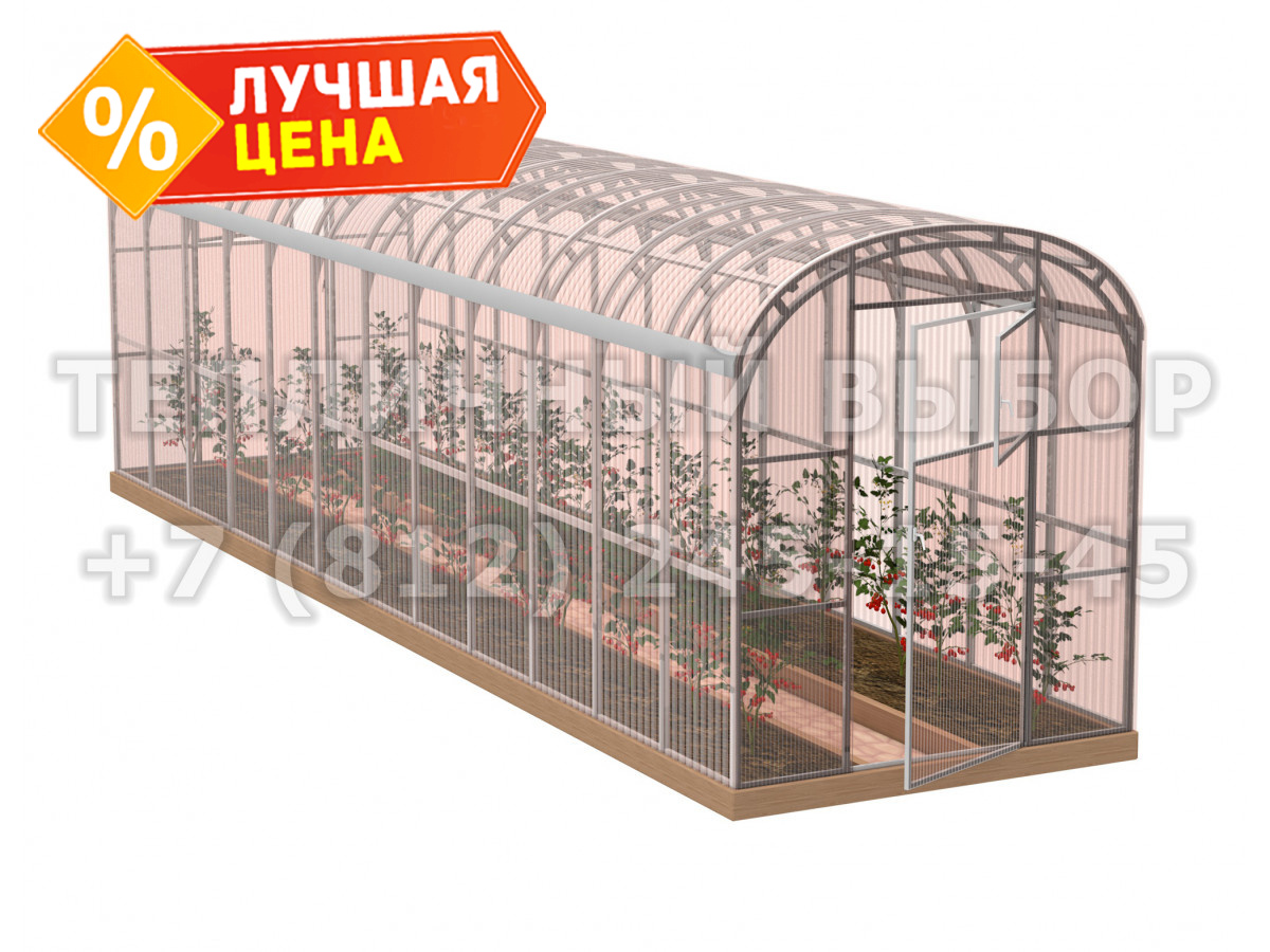 Теплица из поликарбоната-фито Усиленная Прямостенная 2,1х8 h=2.1 м профиль 20х40 мм