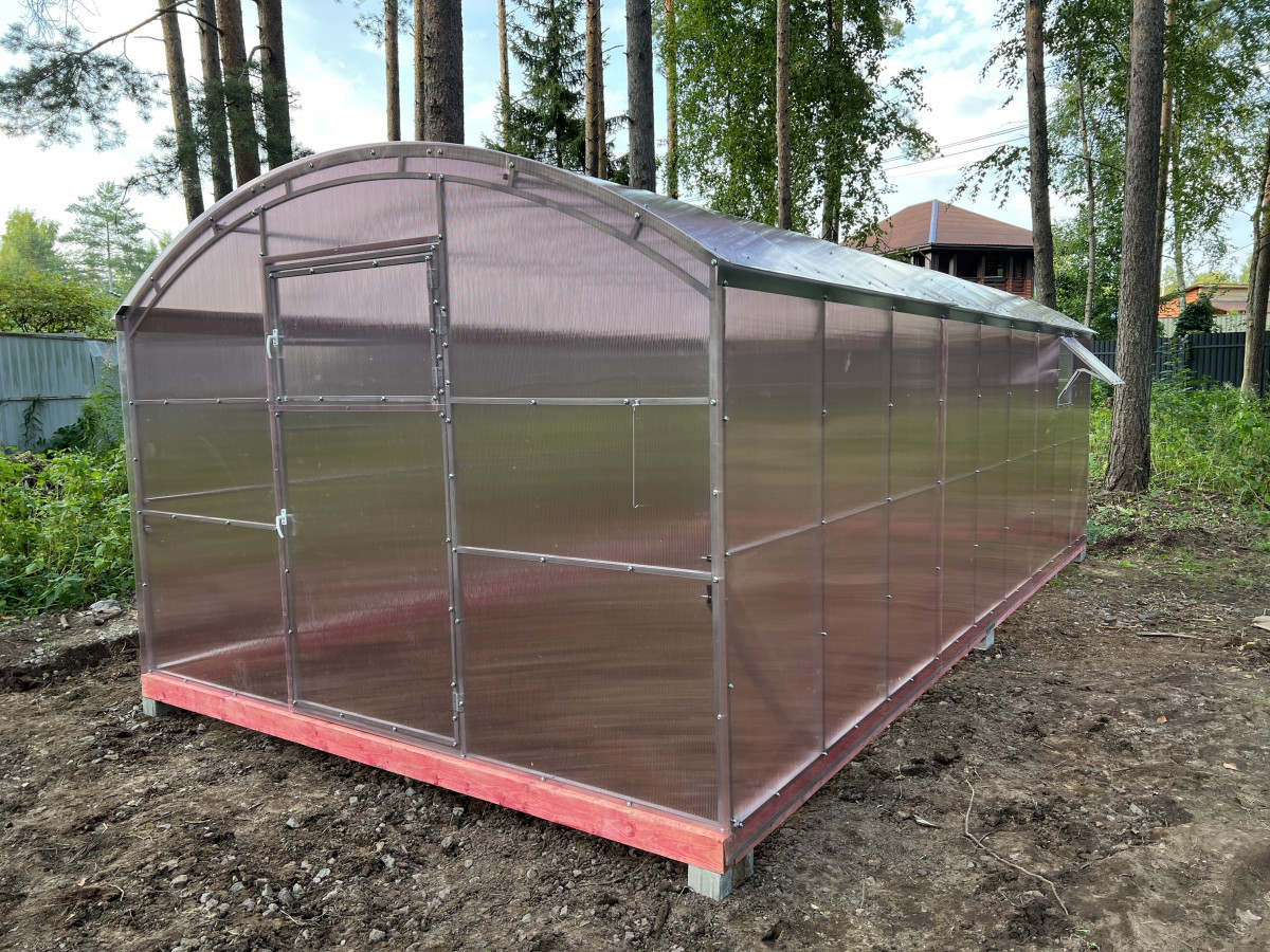 Возможна самостоятельная сборка по подробной инструкции. Сборка теплицы монтажниками-профессионалами компании занимает порядка 3 часов. В качестве основания рекомендуется использовать бетонный, либо деревянный фундамент из бруса. Предварительно брус необходимо обработать антисептиком. Полный комплект состоит из: