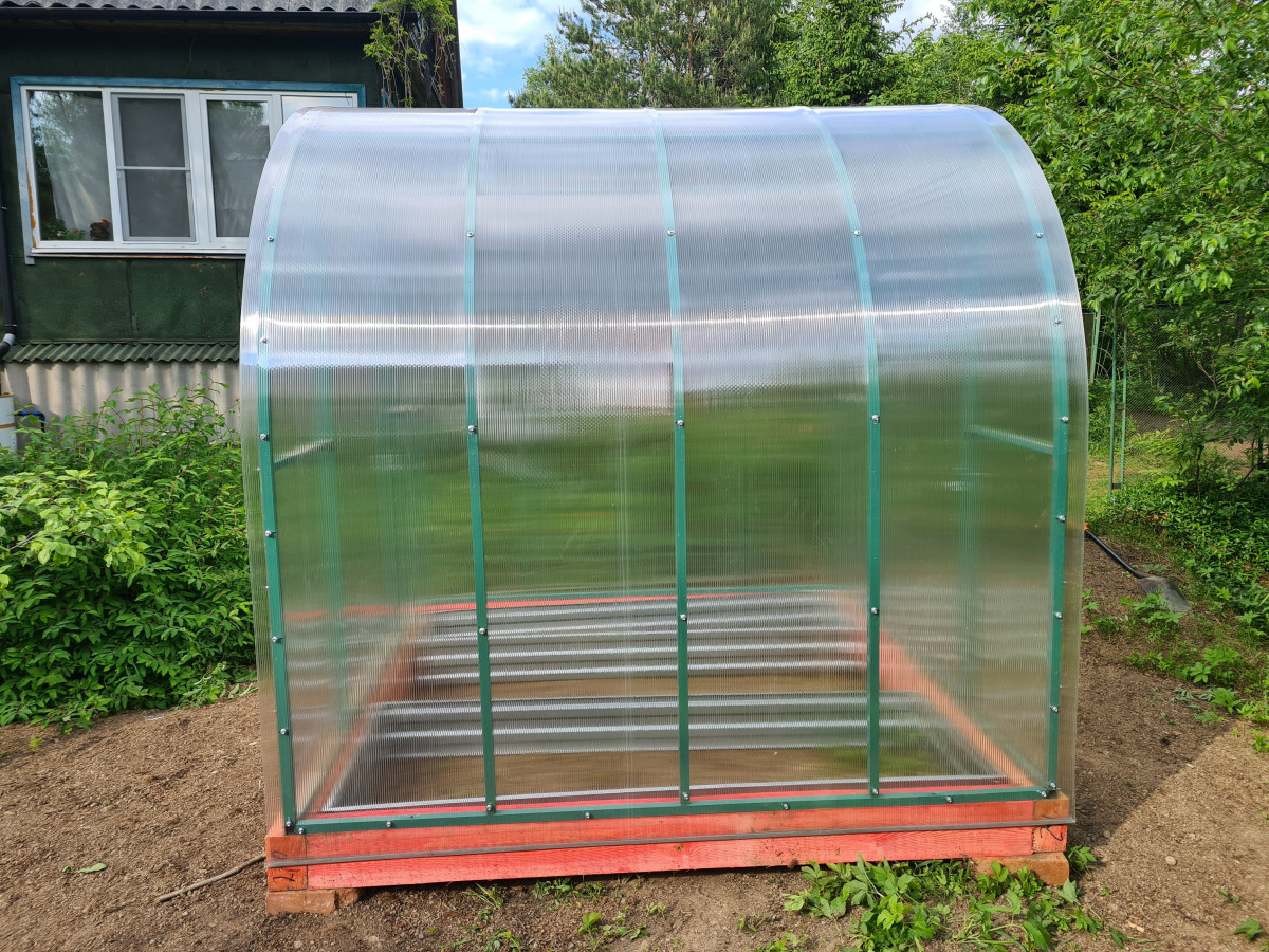• практически прямые боковые стороны теплицы позволяют использовать пространство по максимуму и выращивать культуры, плотно прилегающие к стенкам