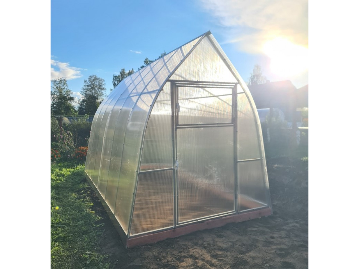 • компактность за счет небольшой ширины теплицы (2,1 метра)
