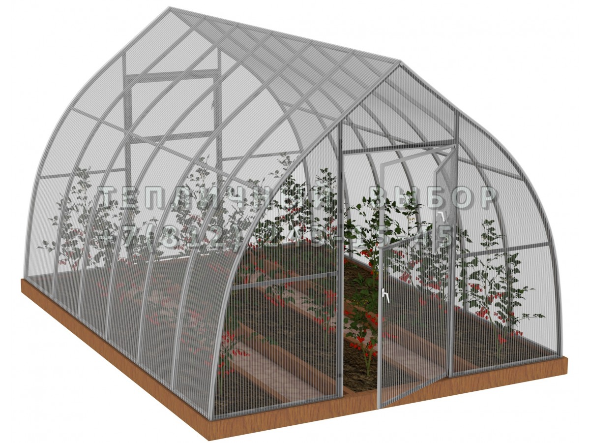 Теплица из поликарбоната Усиленная Капелька 2,5х4 h=2.3 м профиль 25х25 мм