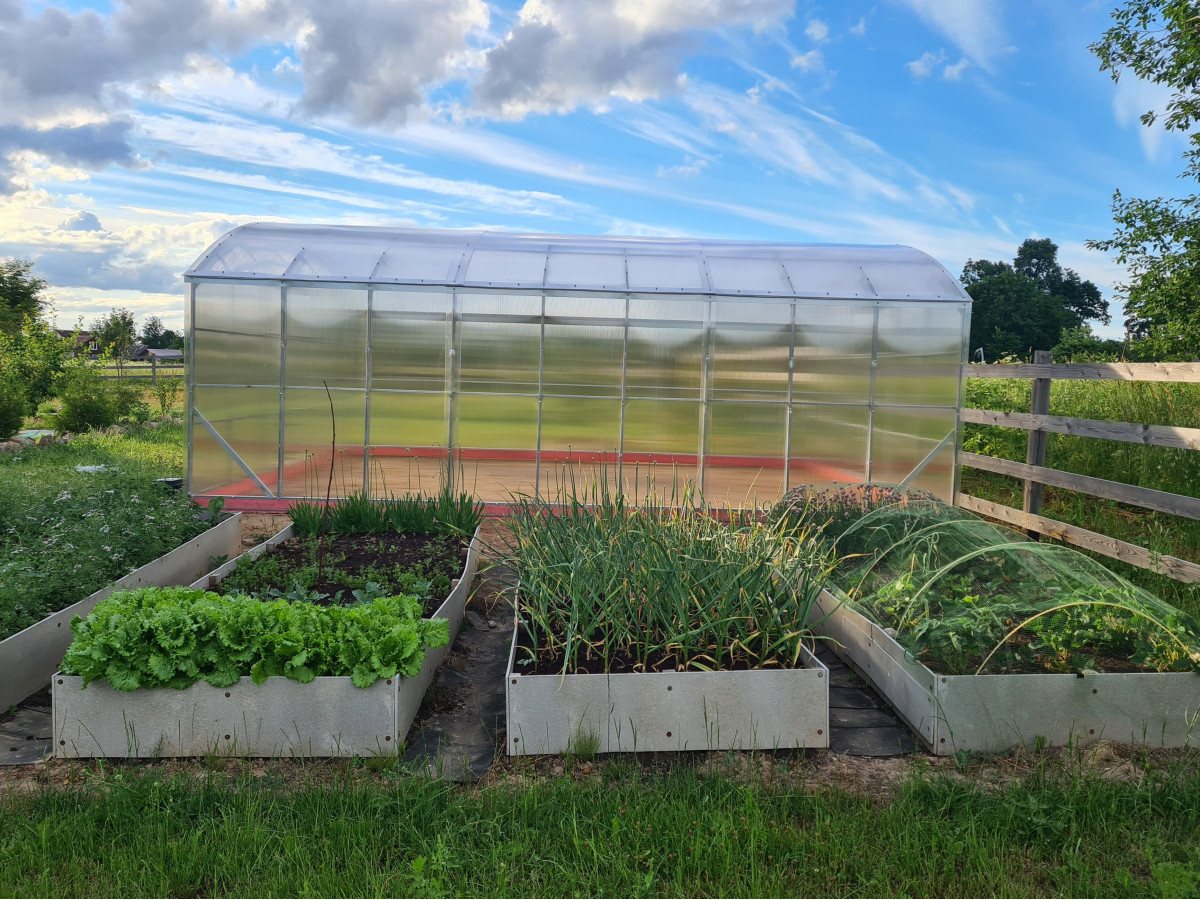 • широкая, ширина теплицы 5 метров позволяет организовать 4 широкие полноценные грядки с комфортными проходами между ними;